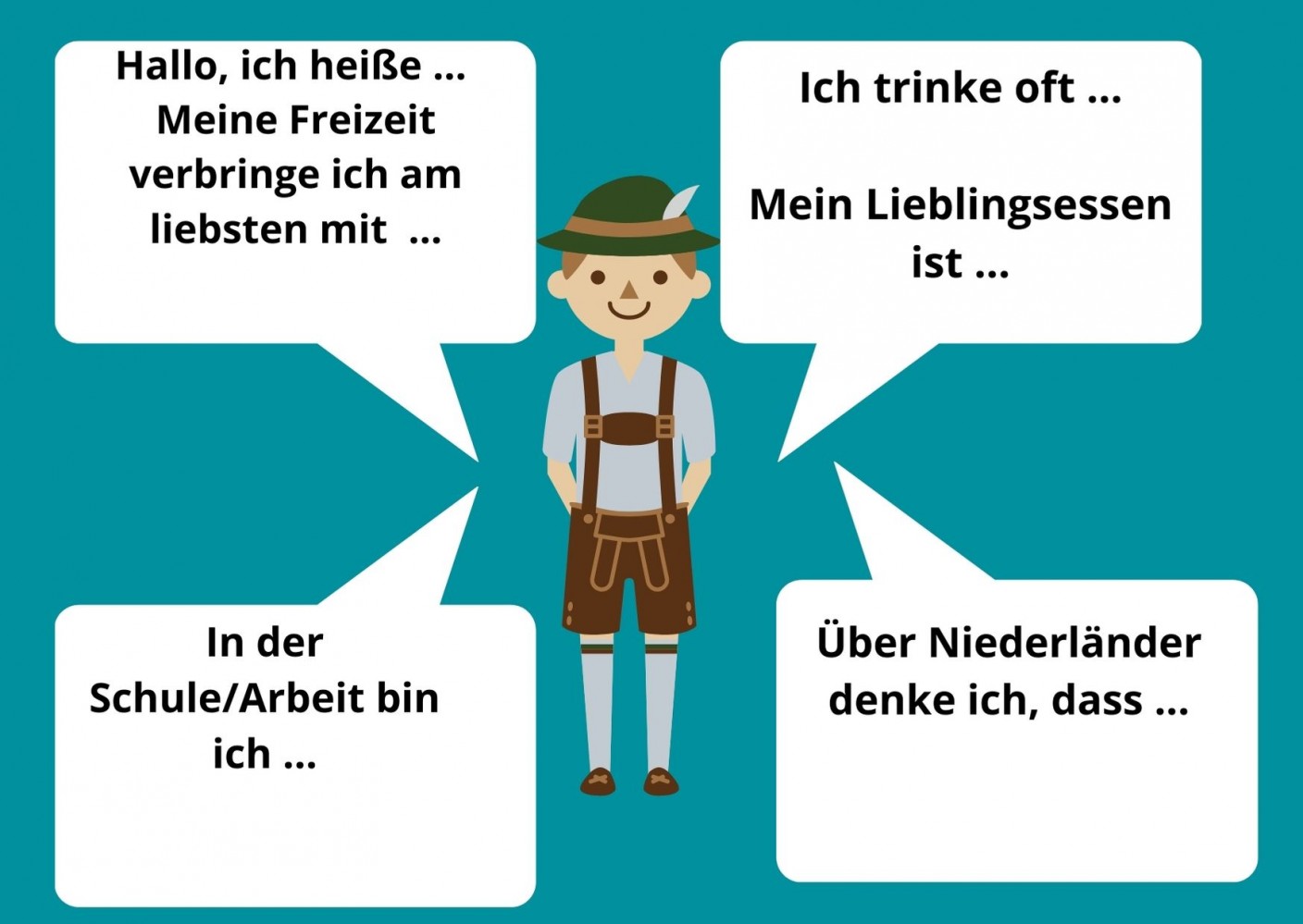 b) Hier seht ihr ein Bild von einem “typischen Deutschen”. Füllt die Textlücken fertig aus: