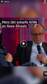 Am WDR-Europaforum äußerte sich der deutsche Bundeskanzler Friedrich Merz kritisch über das Vorgehen Israels im Gazastreifen. Israels kriegerisches Vorgehen sei nicht mehr zu rechtfertigen, so Merz. Seine Äußerung gleicht einem Kurswechsel in der deutschen Politik. In der deutschen Politik wurde sich bisher in Anschuldigungen und Verurteilungen gegenüber der israelischen Politik zurückgehalten, um den Israelis angesichts der Historie nicht in den Rücken zu fallen. Bis heute fühlt sich Deutschland für die antisemitischen Taten des NS-Regimes verantwortlich und steht darum eng an der Seite Israels.