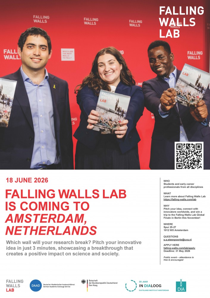 Op 18 juni 2026 organiseert het DIA in het kader van zijn 30-jarig bestaan het Falling Walls Lab Amsterdam.