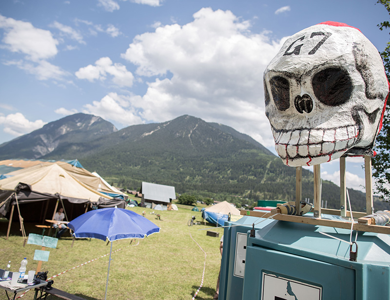 De rechter gaf de demonstranten dinsdag alsnog toestemming voor een protestkamp op een veld in Garmisch, waarvoor de gemeente eerder een vergunning weigerde. Daar worden 1000 tegenstanders van de G7-top verwacht. De tegenstanders vormen een bont gezelschap maar delen hun afkeer van het beleid van de grote industrielanden. Die hebben in hun ogen meer de belangen van grote concerns voor ogen dan die van de bevolking en drukken hun eigen belangen door ten koste van de Derde Wereld, schrijft de Tagesspiegel.