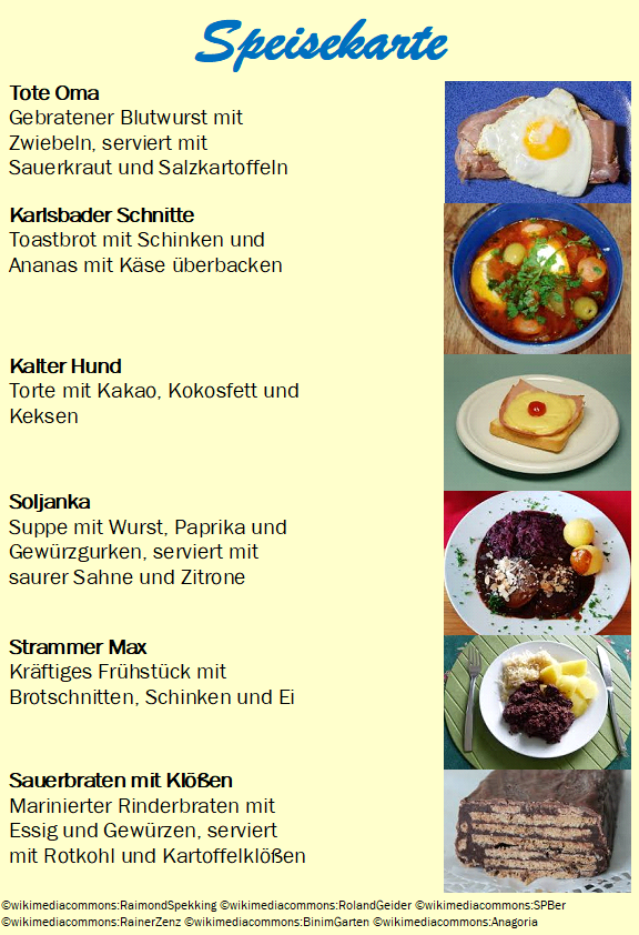 - Verbindet die Gerichte mit den richtigen Abbildungen!