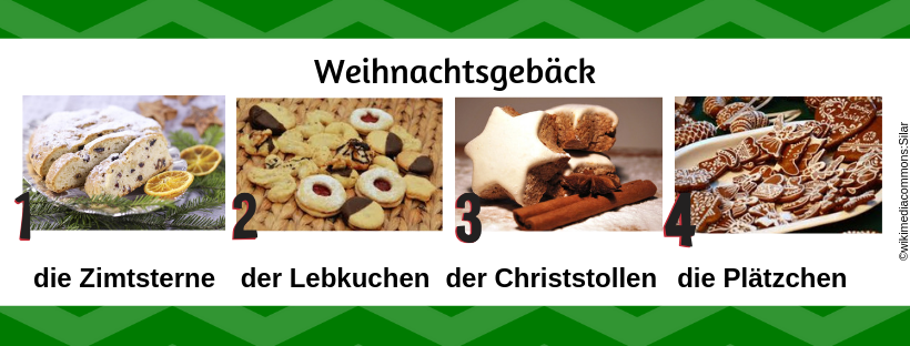 Auf dem Weihnachtsmarkt kann man nicht nur süße Getränke, wie heiße Schokolade, sondern auch viel Weihnachtsgebäck kaufen. Dabei gibt es regionale Unterschiede. In Dresden essen sie zum Beispiel Christstollen. In Nürnberg mögen sie Lebkuchen am liebsten.