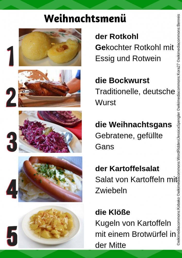 - Was werdet ihr an Weihnachten essen? Und mit wem? Erzählt es eurem Nachbarn.