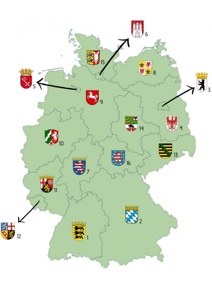 - Verknüpfe die korrekten Namen der Bundesländer mit den Zahlen. Für diese Aufgabe könnt ihr das Internet nutzen.