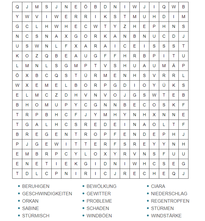 - Welche Wörter, die mit Sturm zu tun haben, kennst du?