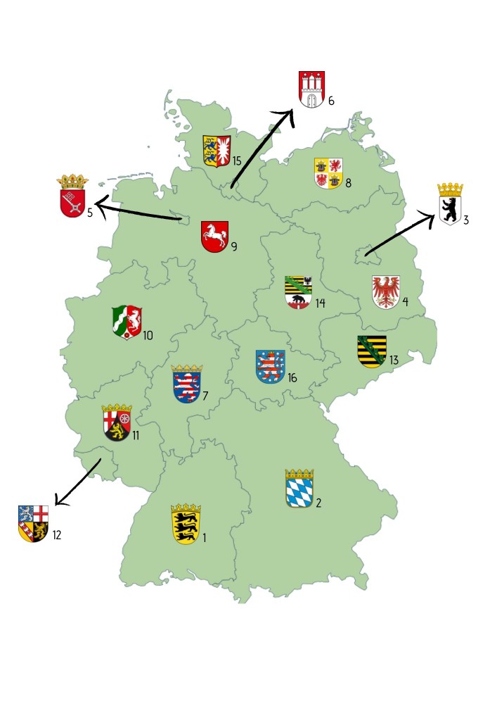 - Verknüpfe die korrekten Namen der Bundesländer mit den Zahlen. Für diese Aufgabe könnt ihr das Internet nutzen.