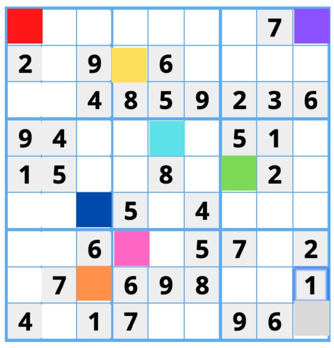 Die Reihenfolge ist: rot, gelb, lila, dunkelblau, lichtblau, grün, orange, rosa und grau. Welches Wort bekommst du heraus?
