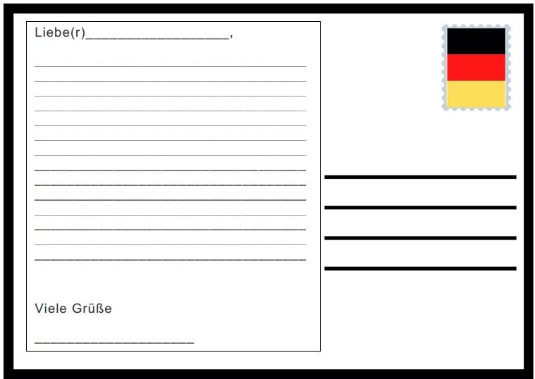 Die meisten Großeltern lieben es Karten und Briefe zu bekommen. Schreibe eine Karte an (d)eine Oma und/oder (d)einen Opa. In der Karte kannst du über deinen Alltag erzählen und wie es dir geht. Frage auch, wie es ihnen geht und welche Aktivität ihr zusammen machen wollt. Schicke die Karte an deinen Lehrer/ deine Lehrerin.