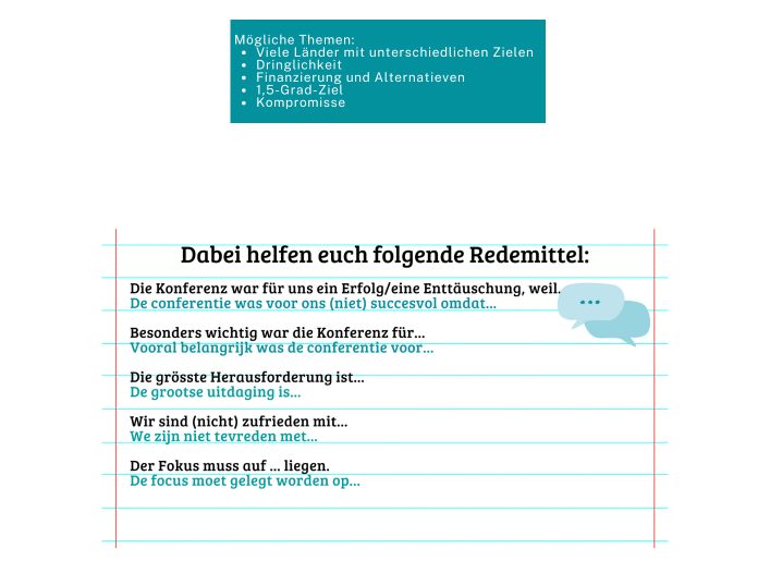 Verfasse mit deiner/m Sitznachbar*in zwei Kurznachrichten für die Plattform X – eine aus der Perspektive der Politiker*innen und eine aus der Sicht der Klimaaktivist*innen. Verwende das Hashtag #COP28UAE. Achte darauf, dass die Berichte jeweils nicht länger als 280 Zeichen sind.