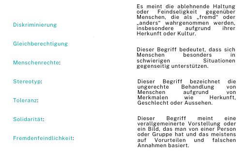 Wähle einen Begriff aus und überlege kurz für dich, welche Bedeutung der Begriff für dich hat. Wie stehst du zu diesem Begriff?