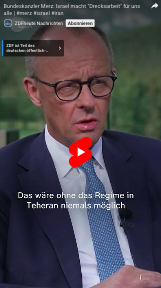 Anderer Meinung ist der deutsche Bundeskanzler beim Vorgehen Israels im Krieg mit dem Iran. Seit Jahren versuchen viele Länder, den Iran diplomatisch vom Bau einer Atombombe abzubringen, was aber bis heute nicht gelungen ist. Israel versucht den Iran nun durch einen Krieg am Bombenbau zu hindern. Inzwischen hat sich die USA eingemischt und die Atomanlagen im Iran bombardiert.
