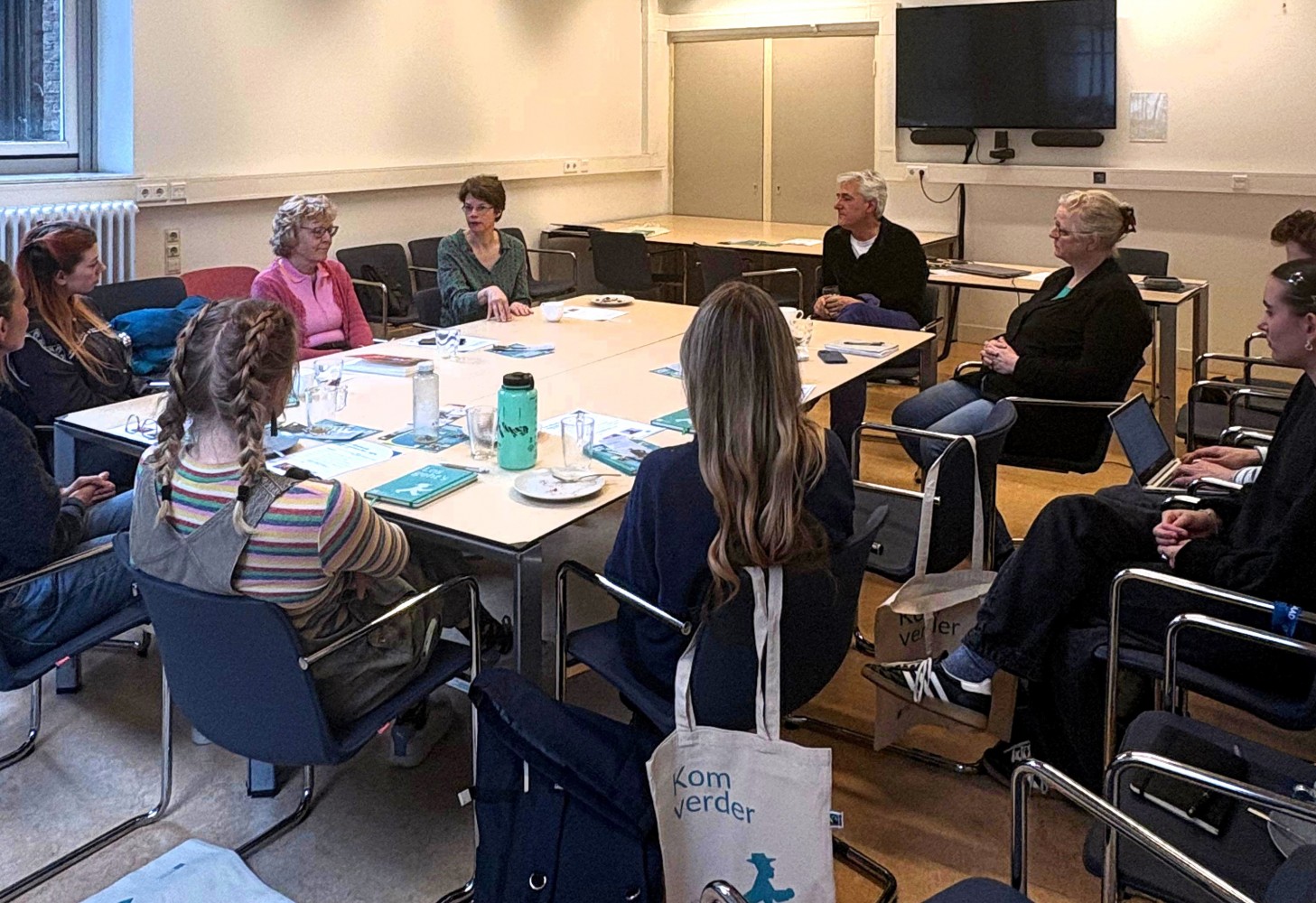 Na een kennismaking bespraken de deelnemers, onder het genot van Kaffee und Kuchen, hun ‘superkrachten.’ Naar voren kwamen termen als empathisch, doelgericht, creatief en meertalig. Vervolgens kwam de diversiteit aan schoolcontexten aan bod. In hoeverre krijgen leerlingen op de verschillende scholen de wereld eigenlijk mee? Waar de een positief sprak over kritisch geëngageerde scholieren, zag de ander juist een gebrek aan maatschappelijke betrokkenheid onder jongeren. Overeenstemming vonden de docenten in het feit dat de verhoudingen zijn verhard. Jongeren zijn agressiever geworden, zo observeerde een deelnemer. De geopolitieke onzekerheid en de polarisatie zijn meer dan voorheen de klas binnengedrongen. Hoe ga je daar als docent mee om?