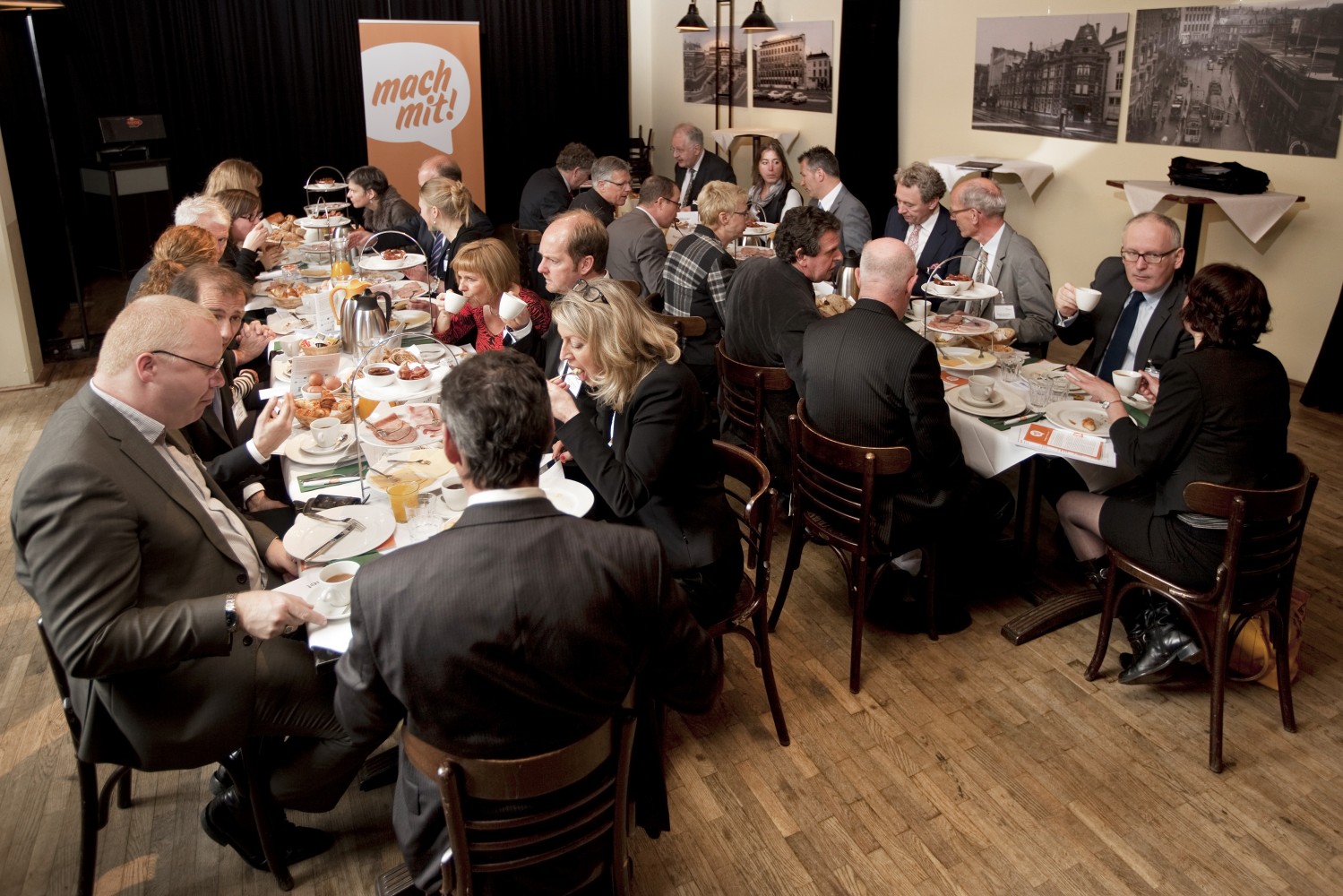 © Peter van BeekVertegenwoordigers uit bedrijfsleven, onderwijs en politiek praten over het vak Duits op school, tijdens een lunch van de Actiegroep Duits.