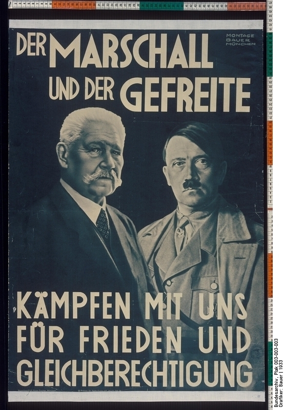 © Bundesarchiv, Plak 003-003-003Hitler en Von Hindenburg op een verkiezingsposter uit 1933. De NSDAP werd de grootste partij.