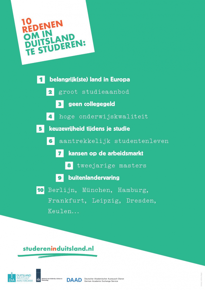 Deze poster geeft een opsomming van tien redenen om in Duitsland te studeren.