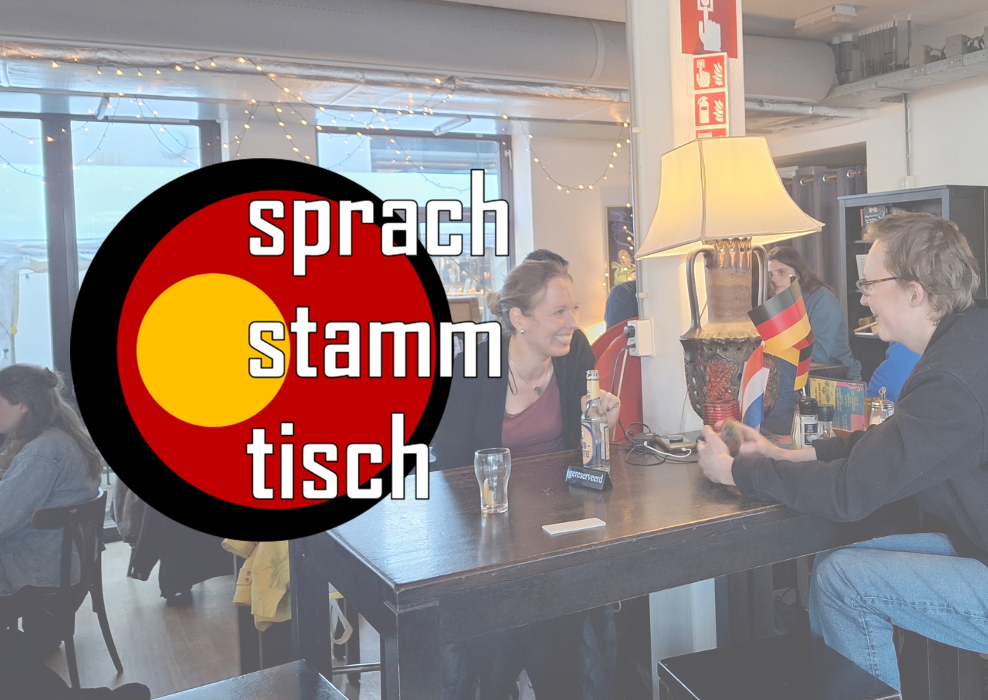 Elke maand vindt er een 'Sprachstammtisch' plaats in het CREA-Café in Amsterdam. Iedereen is van harte welkom. De enige 'regel': we spreken zo veel mogelijk Duits. Soms spelen we een spelletje of we 'tratschen' (kletsen) gewoon over van alles. Dit is een laagdrempelige manier om je Duits te oefenen, maar ook moedertaalsprekers komen regelmatig langs. Natuurlijk ook een goede manier om andere mensen te leren kennen die van Duits houden. Aanmelden is niet nodig, kom langs en neem een drankje. Je herkent onze tafel aan de Duitse vlaggetjes.