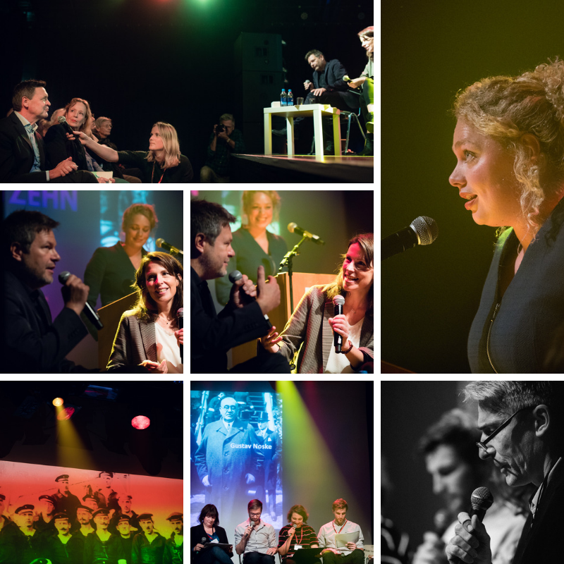 Robert Habeck, voorzitter van de Duitse partij Die Grünen, schreef samen met zijn vrouw Andrea Paluch het theaterstuk “Neunzehnachtzehn” over de matrozenopstand in Kiel en de Novemberrevolutie in 1918. Op 1 november droegen we scenes uit het theaterstuk voor en ging Robert Habeck met Britta Bendieck (DIA) in gesprek over revolutie: