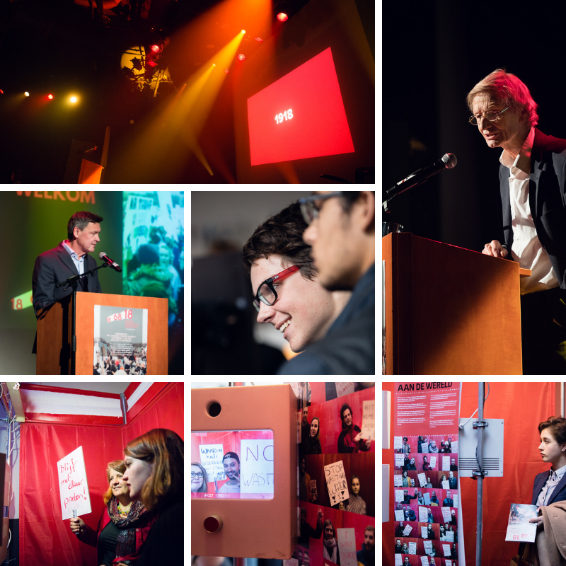 In 2018 werden de Novemberrevolutie van 1918 en de protestbeweging van 1968 herdacht. Twee momenten waarop mensen in opstand kwamen en maatschappelijke veranderingen eisten. Naar aanleiding van deze gebeurtenissen organiseerden wij op 1 november 2018 de themamiddag '18-68-18. Sociale bewegingen toen en nu'. Met lezingen, theater en debat blikten we terug op 1918 en 1968 en keken we naar huidige sociale bewegingen. De bijeenkomst vond plaats in de Melkweg in Amsterdam i.s.m. het Goethe-Institut Niederlande en het Genootschap Nederland Duitsland. Een terugblik:
